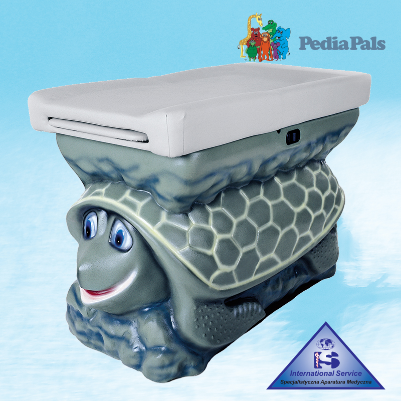 Stoły zabiegowe ZOOPALS - COMPACT firmy Pedia Pals mają podstawy w kształcie różnych zwierząt (żółwia, delfina, ...). Te w pełni funkcjonalne stoły zabiegowe w dużym stopniu przyczyniają się do uprzyjemnienia atmosfery w gabinecie lekarskim lub zabiegowym. Korpus stołu wykonany jest z trwałego, odpornego na zarysowania włókna szklanego z bezpiecznymi, zaokrąglonymi krawędziami.