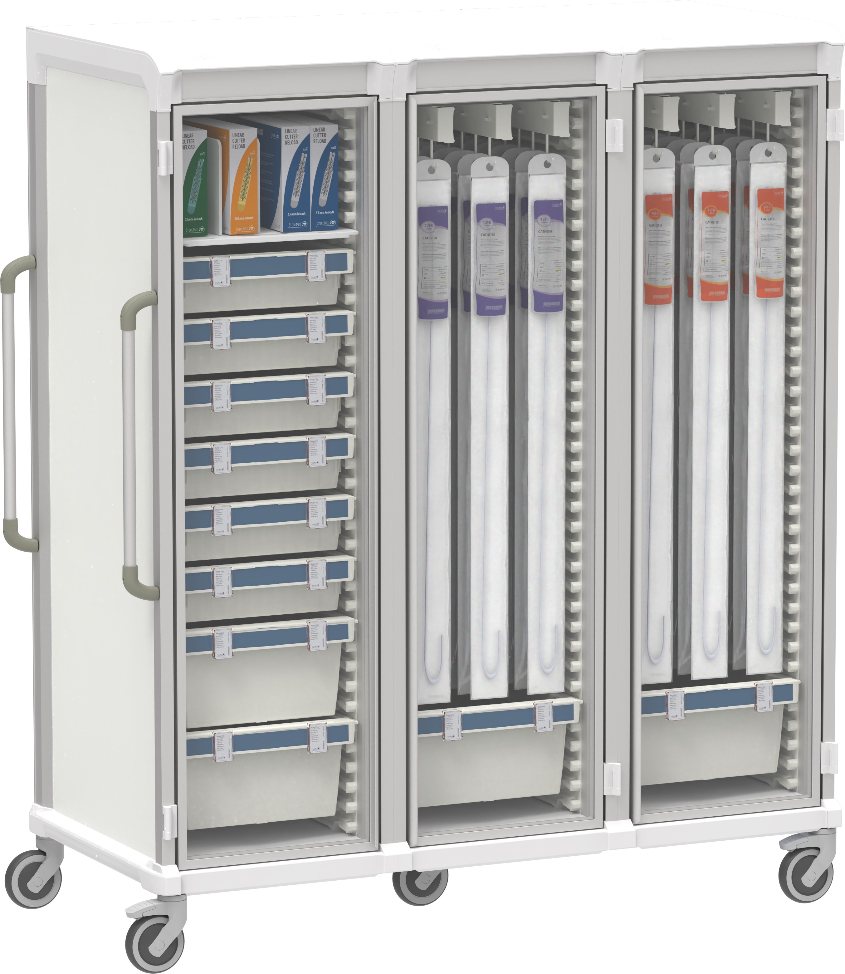 Wózek z koszami na cewniki i miejscem na zaopatrzenie typu UUU: