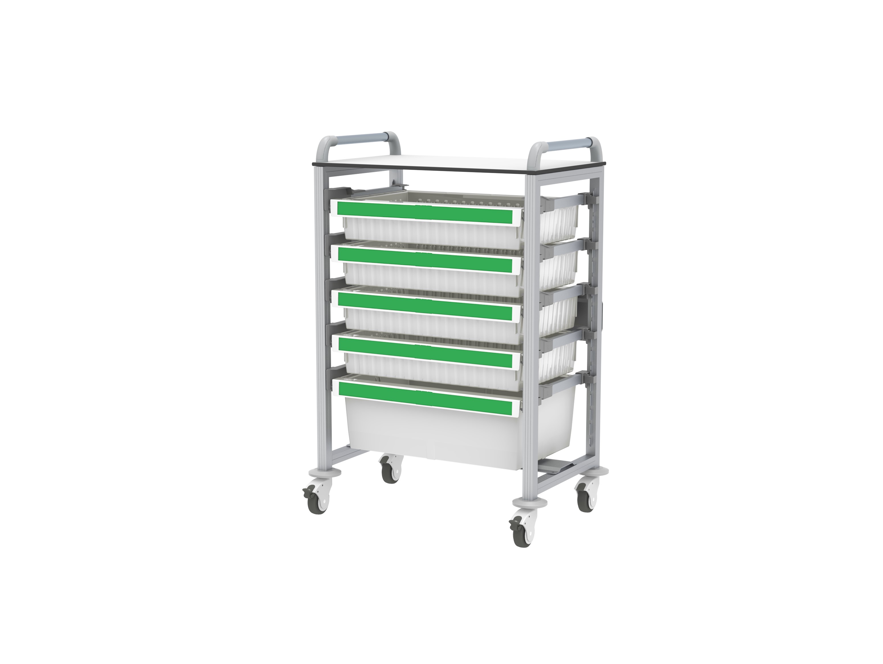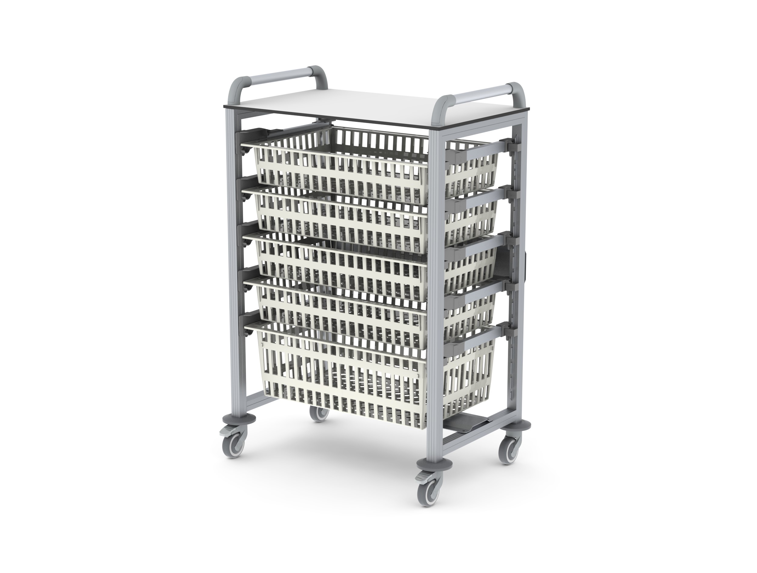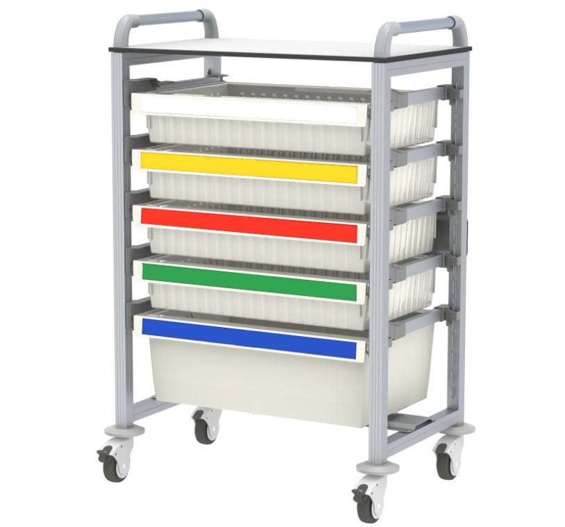 Wózek pielęgniarski Hera jest lekki, elastyczny i łatwy w manewrowaniu. Ma aluminiową konstrukcję, powierzchnię roboczą z laminatu HPL i podwójne uchwyty do pchania. Unikatowa szczelna struktura wózka zapobiega rozwojowi bakterii, dzięki czemu jest również bardzo łatwa do czyszczenia.