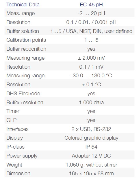 Tylko kilka przycisków pozwala użytkownikowi kontrolować wszystkie funkcje w intuicyjny i łatwy sposób. EC-45 pH może być dostarczany