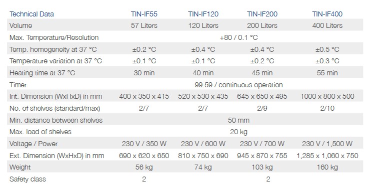 Nasze nowe inkubatory z wymuszonym obiegiem powietrza bardzo skutecznie kontrolują temperaturę do 80 °C. Dodatkowo możliwe jest ustawienie w temperaturze 130 °C, co pozwala na termiczną sterylizację komory. Wewnętrzne szklane drzwi o pełnej szerokości zapewniają doskonałą obserwację próbek bez niepotrzebnych i kosztownych strat ciepła.