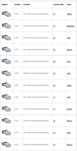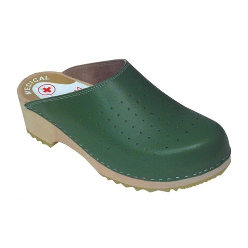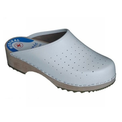 Lekkie spody drewniane z profilem ortopedycznym. Podeszwa gumowa przeciwpoślizgowa. Cholewka skórzana. Posiada atesty Instytutu Przemysłu Skórzanego dopuszczające do stosowania w placówkach Służby Zdrowia oraz Deklarację Zgodności z normami europejskimi.