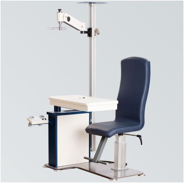 Unit okulistyczny CLASSIC składa się z bazy, blatu przesuwnego na 2 urządzenia, miejsca na rzutnik oraz fotela podnoszonego elektrycznie. Fotel wyposażony jest w wysokiej jakości siłownik szwajcarskiej firmy Schumo, podnóżek oraz podłokietniki (opcja). Siedzenie fotela obite jest skajem w kolorach wg wzornika. Blat przesuwny blokowany jest elektromagnetycznie. Wyposażony jest on w gniazdo niskonapięciowe 6V12W do zasilania lampy szczelinowej oraz gniazdo zasilające urządzenie diagnostyczne o napięciu 230V (np. autorefraktometr). Ponadto na unicie mocowane jest oświetlenie w postaci lampki halogenowej z regulacją natężenia światła oraz opcjonalne balansowe ramię foroptera. Unit dostępny jest w 5 standardowych wersjach kolorystycznych: Relax, Old Sea, Purple & Grey, Limonka, Black & Cherry.