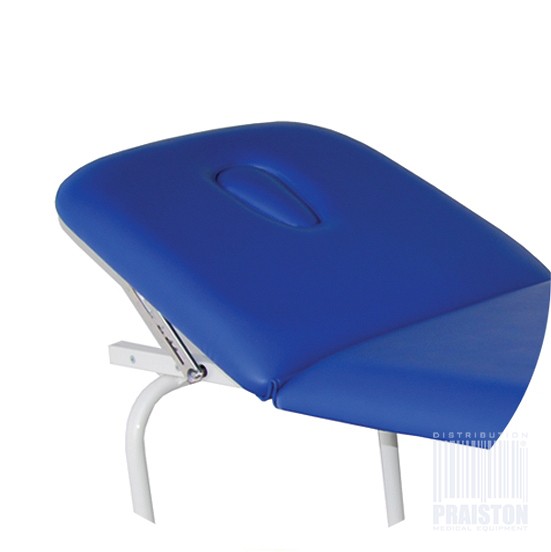 Stałą wysokość i dwu częściowe leże z regulowanym podgłówkiem w standardzie i wycięciem na twarz i zatyczką,
