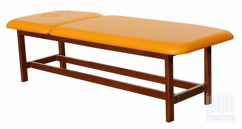 Stała wysokość i dwu częściowe leże z regulowanym podgłówkiem w standardzie z wycięciem na twarz i zatyczką,