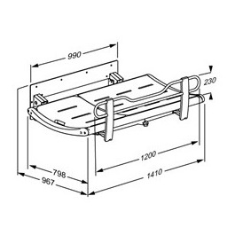 Stół prysznicowy i do pielęgnacji 3000, zasilany elektrycznie, regulowana wysokość 700 mm; od 300 mm -1000 mm, z przewodowym sterowaniem ręcznym Składany. Zawiera szyna bezpieczeństwa i tacę na wodę ze zintegrowanym wylotem Długość powierzchni 1800 mm, wymiary zewnętrzne 1025 mm x 1410 mm. Informacje na temat mocowań odpowiednich dla różnych typów ścian można znaleźć w arkuszu danych technicznych (pdf).Do produktu należy zamówić dodatkowo zestaw mocujący.