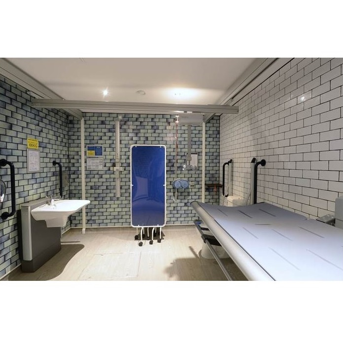 - Funkcjonalność: Zintegrowane sprężyny gazowe umożliwiają złożenie stołu, gdy nie jest używany, aby zmaksymalizować powierzchnię podłogi przed urządzeniem. Kurtyna rozbryzgowa (opcjonalna) do stołu pielęgnacyjnego chroni opiekuna przed rozpryskiwaniem.