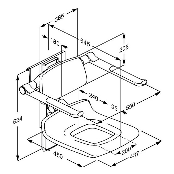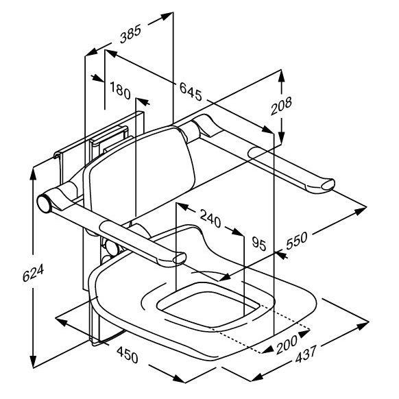 Siedzisko prysznicowe PLUS 450 z oparciem i podłokietnikami