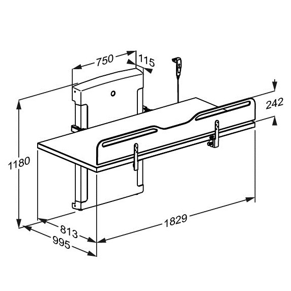 - Funkcjonalność: Zintegrowane sprężyny gazowe umożliwiają złożenie stołu, gdy nie jest używany, aby zmaksymalizować powierzchnię podłogi przed urządzeniem. Kurtyna rozbryzgowa (opcjonalna) do stołu pielęgnacyjnego chroni opiekuna przed rozpryskiwaniem.