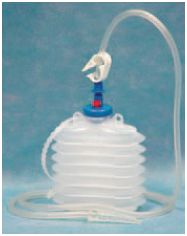 Pojemność 250 ml. Redon - mieszek z zastawką przeciw zwrotną i łącznikiem schodkowym. Służące do wywierania podciśnienia od 120mbar. Dren łączący o długości 125 cm. Uniwersalna końcówka schodkowa dla drenów Redona od Ch6 do Ch18. Jałowy nie pirogenny.