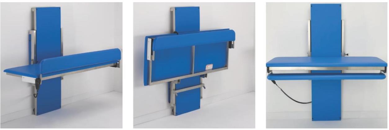 Naścienny przewijak z elektrycznym podnośnikiem, który jest odpowiedni dla dzieci i dorosłych nawet do 200 kg. Pomimo swojej solidnej konstrukcji przewijak ma wąską budowę więc pasuje do większości pomieszczeń. Unikalna osłona bezpieczeństwa może być schowana aby usprawnić dostęp do realizowania transportu np. z wózka inwalidzkiego. Przewijak ten ma bardzo imponujący zakres unoszenia 600mm. Różne rozmiary przewijaka, zaspokajają różne potrzeby od dzieci aż po dorosłych. Rama przewijaka jest malowana proszkowo dlatego też może się on nadawać do pokojów kąpielowych lub innych wilgotnych pomieszczeń.
