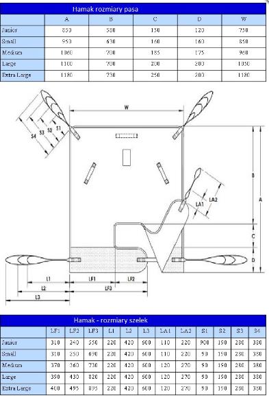 Pas transportowy typu Hamak zapewnia maksymalne wsparcie dla okolicy krzyżowej pacjenta i jest idealny do zastosowania w przypadkach, gdy nie można zastosować pasa uniwersalnego ze względu na zbyt słaby stan mięśni pacjenta. Pas transportowy może być stosowany w pozycji nóg rozdzielonych jak i skrzyżowanych; zapewnia on również dobre podtrzymanie osobom z amputowanymi kończynami (dla pacjentów z amputowanymi kończynami musi zostać przeprowadzona ocena ryzyka)