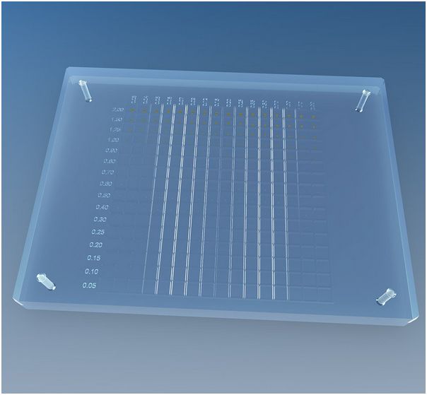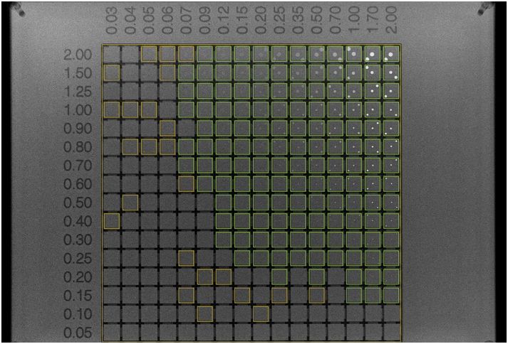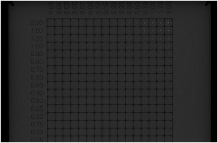 Fantom do testowania szczegółowości kontrastu aparatów mammograficznych zgodnie z Europejskimi wytycznymi odnośnie Zapewniania Jakości w mammografii (“European Guidelines for Quality Assurance in Mammography Screening”), rozporządzeniem Ministra Zdrowia, polską normą PN-EN 61223-3-2 oraz wymaganiami NFZ. Pozwala na stwierdzenie czy aparat mammograficzny pozwala na zobrazowanie obiektów o bardzo niskim kontraście i średnicy, ustalić optymalną technikę ekspozycji lub porównać jakość obrazu dla różnych grubości obiektów przy różnej grubości PMMA.