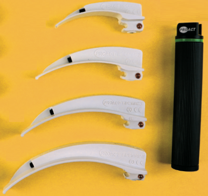 Rękojeści laryngoskopowe PROACT do rezonansu magnetycznego są specjalnie zaprojektowane do użytku w środowisku MRI. Rękojeści te, przeznaczone wyłącznie do użytku z łyżkami światłowodowymi PROACT MR. Rękojeści są zasilane specjalnym akumulatorem litowym pięciokrotnego użytku, przeznaczonym do użytku w warunkach rezonansu magnetycznego. Każdy akumulator zapewnia ponad 100 minut pracy. W każdym pudełku z 10 rękojeściami znajdują się 2 akumulatory. Użytkownik powinien użyć każdej baterii pięć razy przed jej wyrzuceniem i zmianą na drugą dostarczoną baterię. Druga bateria działa również jako rezerwa bezpieczeństwa w przypadku mało prawdopodobnej awarii pierwszej baterii.