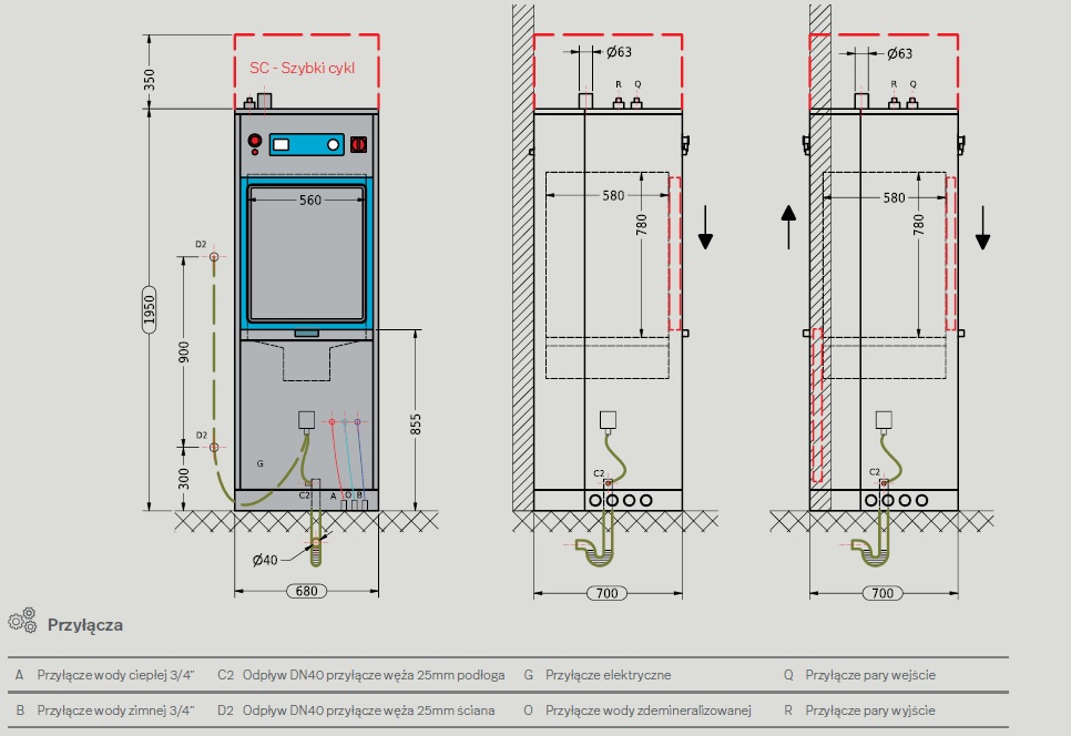 16. Wymiary PROHS 10DIN SC AUTO (szybki cykl) 680mm x 700mm x 2300mm (szer. x głeb. x wys. mm)