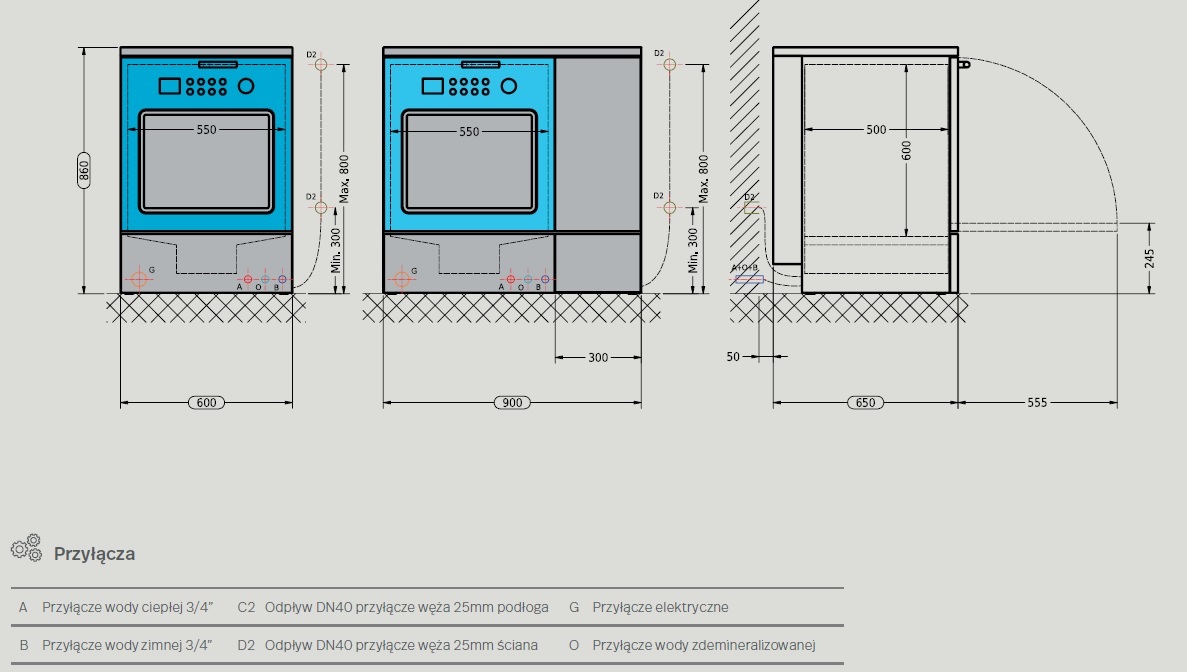 3. Wymiary: 8DIN: 600mm x 650mm x 860mm / 8DIN SC: 900mm x 650mm x 860mm