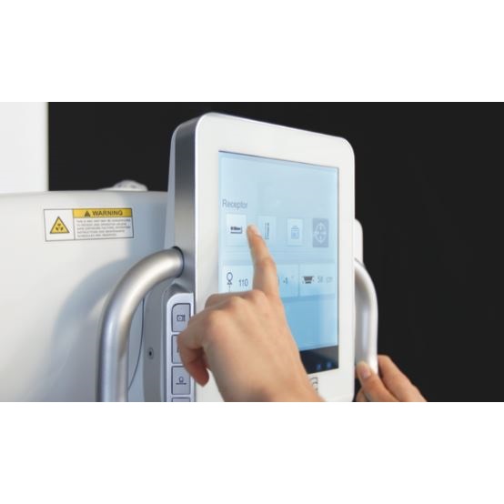 W pełni cyfrowy system DR z dużym, dotykowym ekranem jako centralnym interfejsem zarządzania i wyświetlania danych aparatu (wyświetlanie odległości SID od stołu i statywu płucnego, wysokości stołu i wielu innych przydatnych informacji).