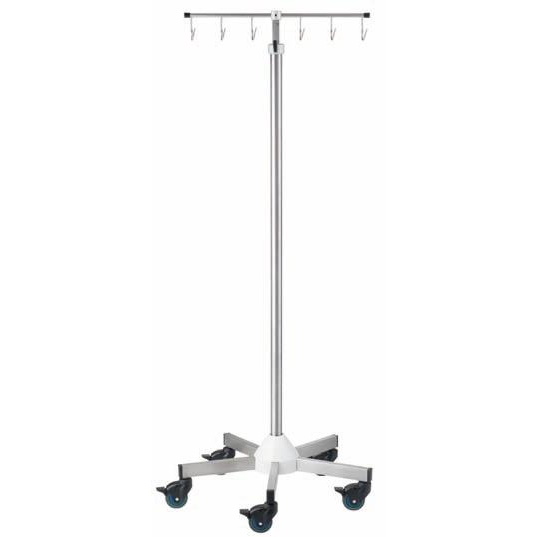 Model z 5 szynami norm. Materiał stal szlachetna (polerowane). Średnica podstawy 38 / 25 mm. Wieszak na butelki stal szlachetna 6 haków - 2 kg / hak. Regulacja wysokosci jednoręcznego przestawienia wysokości "system ustawiania" przestawienie wysokości 1.690 mm – 2.200 mm. Długość zewnetrznej rurki 1.420 mm. Średnica podstawy 680 mm. Profil wysięgnika 45 x 25 mm, rolki mono 80 mm (5 x antystatyczne & blokada). Całkowita masa zestawu około 25 kg. Obciążalność łączna 80 kg.