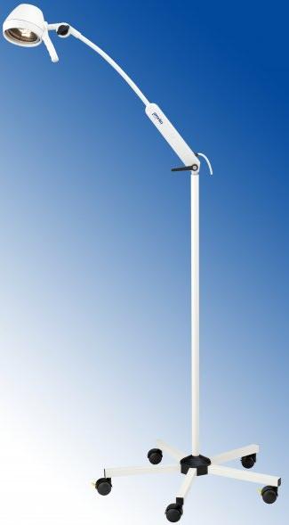 Seria 1 - 50 W - nowoczesny i ładny design, proste i bezpieczne ustawienie głowicy lampy przy pomocy uchwytu. Ramię przegubowe. Lampa na rurze stojącej z podstawą na rolkach. Kolor lampy biały; typ lampy reflektor halogenowy z zimnym lustrem; lampy 12 V / 50 W, 10°; natężenie oświetlenia ok. 40.000 lx / 500 mm; powierzchnia świecenia O 90 / 180 mm pod 500 / 1.000 mm; temperatura koloru ok. 3.000 (3.700)2 K; żywotność ok. 3.000 h (lampa); przełącznik w obudowie lampy; wysięg lampy ok. 800 mm; przyłącze do sieci 230 V, 50 - 60 Hz; ciężar całkowity ok. 9,5 kg; czop przyłączeniowy 18 x 35 mm (O x L); wysokość rury ok. 1.070 mm; podstawa na rolkach stal, powlekana kol. białego; średnica podstawy ok. 635 mm; rolki rolki podwójne 50 mm; (2 x antystatyczne i blokada, 3 x normalne); opcjonalnie: dimmer / wtyczka międzynarodowa / wersja 110 V / 2 filtr temperatury koloru.