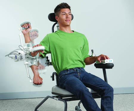 Umożliwia ciągły ruch bierny w stawie ramiennym- dwa silniki zsynchronizowane tak, aby umożliwić sekwencję ruchów z rotacją zewnętrzną/wewnętrzną, zgięciem/wyprostowaniem, odwodzeniem/przywodzeniem. Jest doskonałe do zabiegów na stawie raimennym.