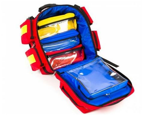 Plecak na sprzęt medyczny. Wykonany z nylonu z pasami odblaskowymi i zamkiem błyskawicznym; 5 zewnętrznych kieszeni i wyjmowane wewnętrzne kieszenie; wyściełane taśmy naramienne.
