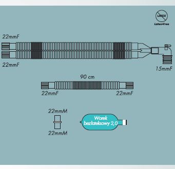 Obwody do aparatów do znieczulania z odgałęzieniem i bezlateksowym workiem oddechowym
