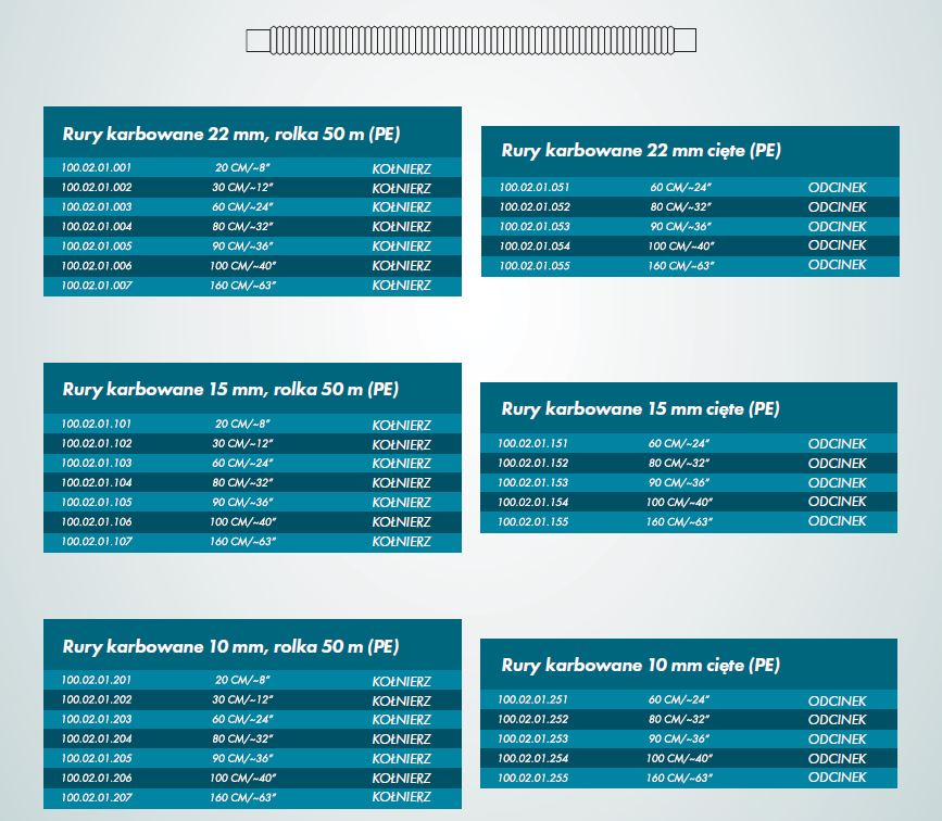 • Elastyczne giętkie, odporne na zgniecenia rury