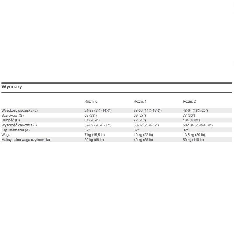 Pony jest dostępny w 3 rozmiarach i jest odpowiedni dla dzieci w wieku od 1½ -12 lat. Nie wszystkie dzieci są takie same – dlatego w celu dobrania odpowiedniego rozmiaru ważne jest, aby skorzystać z tabeli wymiarów.