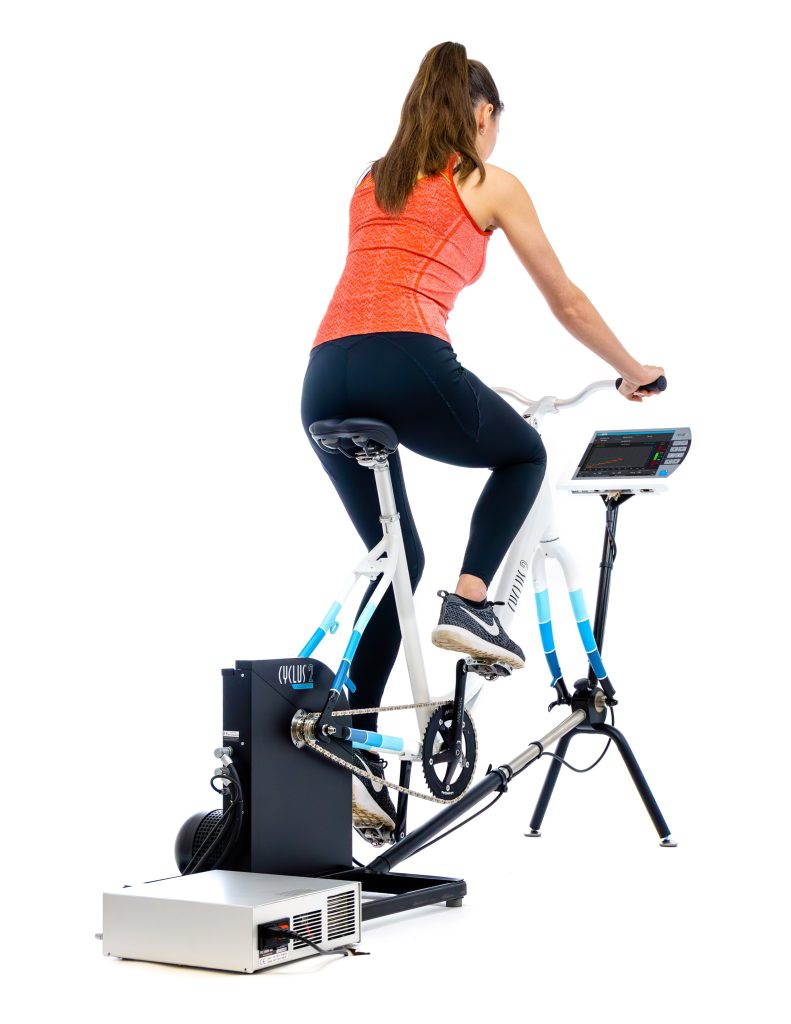 - Cyclus2 Standard ECCENTRIC ma wbudowaną ramę rowerową, a osoba badana trenuje w pozycji siedzącej pionowo, tak jak podczas jazdy na rowerze.