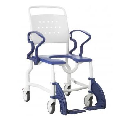 Wyposażony w siedzisko z wycięciem, na czterech kołach 5 calowych z hamulcem. Wyposażony w ściągane podnóżki i odchylane podłokietniki.
