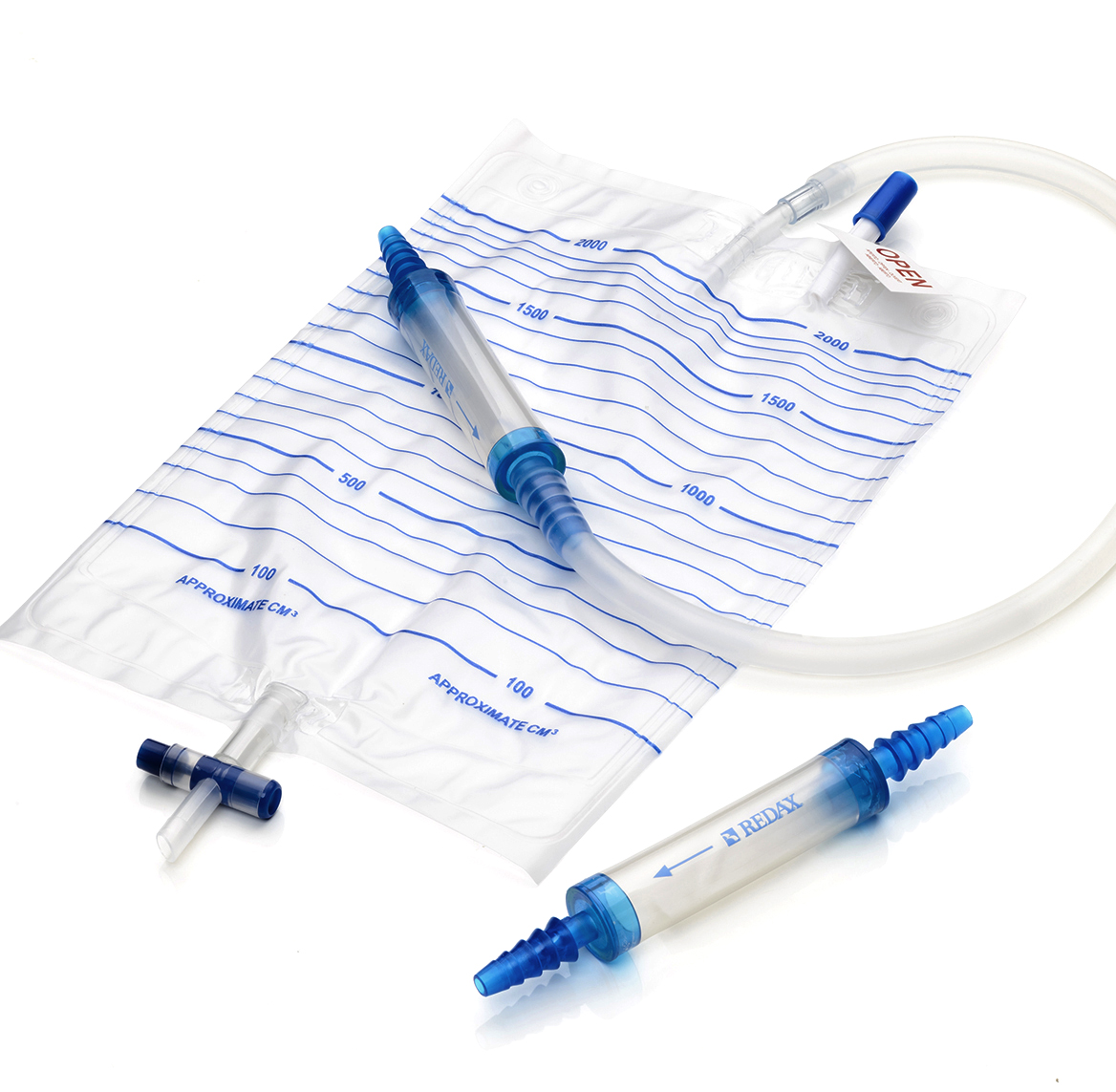 - jednokierunkowa zakończona obustronnie łącznikiem schodkowym, która umożliwia połączenie jej z workiem oraz drenem pacjenta,