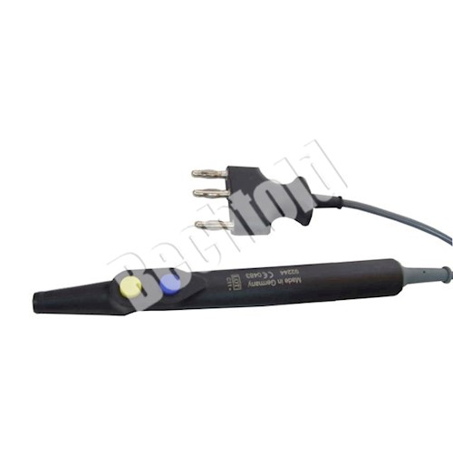 Uchwyt sterylizowalny szeroki do elektrod 2,4 mm z przyciskami cięcie-koagulacja, z kablem 3 m i wtykiem 3-bolcowym. Do aparatów ELTRON, Erbe, Berchtold, Martin, Conmed, Valleylab, Emed.