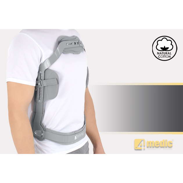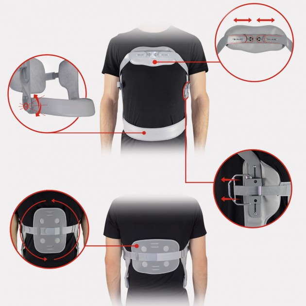 Całość konstrukcji została pokryta od zewnątrz laminatem medycznym. Taka konstrukcja wyrobu pozwala na zakładanie gorsetu na gołe ciało, bez ryzyka wystąpienia odparzeń skóry.Wyżej wymienione cechy pozwalają na stosowanie gorsetu przez wszelkiego typuośrodki medyczne, nawet te bez specjalistycznego wyposażenia, co szczególnie ważne jest w ortotyce przypadków nagłych.