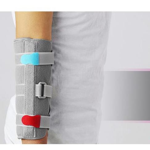 Dziecięcy tutor łokciowy wykonany z lekkiego surowca, wyścielonego przewiewną bawełnianą dzianiną frotte, zapewnia wentylację i odprowadzanie wilgoci z powierzchni skóry. Wyposażony w szyny ortopedyczne doskonale stabilizuje staw łokciowy i jest idealną alternatywą dla ciężkiego opatrunku gipsowego łokcia.