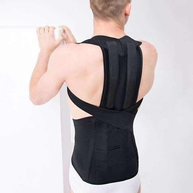 Wysoka orteza krzyżowo-lędźwiowo-piersiowa z podpaszkami należy do grupy 4Classic i została przez nas skonstruowana w taki sposób, aby zwiększyć jej walory użytkowe, poprawić jej funkcjonalność, zakres stabilizacji oraz komfort użytkowania. Dodatkowym atutem jest możliwość regulacji wysokości stelaża kręgosłupa. Stworzona z lekkich materiałów o dużej przewiewności i dzięki temu wyrób stał się bardzo lekki i łatwo odprowadzający pot od ciała. Anatomiczny krój wyrobu powoduje, że orteza dokładniej dopasowuje się do każdej sylwetki oraz dużo lepiej stabilizuje odcinek krzyżowo-lędźwiowo-piersiowy kręgosłupa. Dzięki zastosowaniu podpaszek w odcinku piersiowym udało nam się uzyskać pełną stabilizację przednio – tylną na całej długości kręgosłupa.