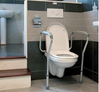 Aluminiową ramę mocuje się do toalety (za pomocą śrub od deski klozetowej, rozstaw otworów to 17 cm, szerokość jednego otworu to 2cm). Nogi mają regulację wysokości, aby dostosować ją do wzrostu użytkownika. Listwy na ramionach zapewniają bezpieczny uchwyt i szeroki obszar na położenie ramion podczas pobytu w toalecie. Może być używana w połączeniu z nakładką na sedes. Zapewnia stabilność podczas siadania i wstawania z muszli. Doskonała dla osób starszych, chorych, po operacjach np. stawu biodrowego.
