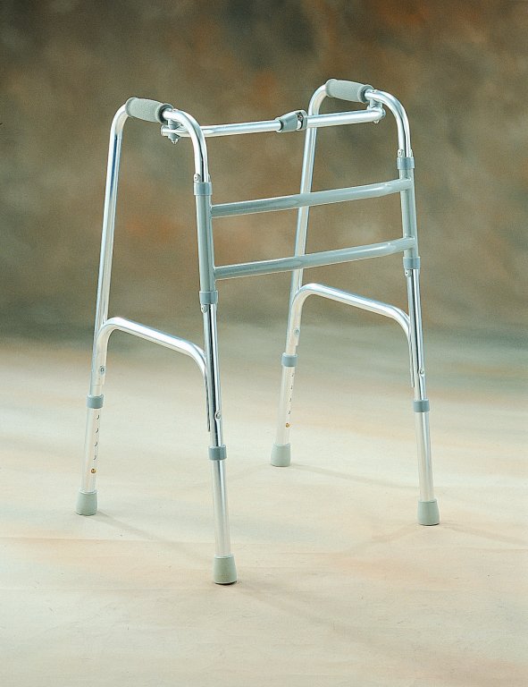 Balkonik kroczący A505. Balkonik pomocniczo-rehabilitacyjny dla osób niepełnosprawnych ze schorzeniem narządu ruchu, z problemami pionizacji. Składany, łatwy w transporcie. Wykonany z aluminium. Maksymalne obciążenie:160 kg. Zakres regulacji wysokości: od 690 do 870 mm. Maksymalna szerokość:610 mm. Maksymalna głębokość:445 mm.
