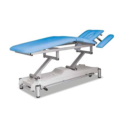 Stoły z tej serii wyposażone są w drugi siłownik do regulacji leża do pozycji drenażowej do specjalnej fizjoterapii. Pozycje łóżka można łatwo i bezgłośnie regulować podczas terapii.
