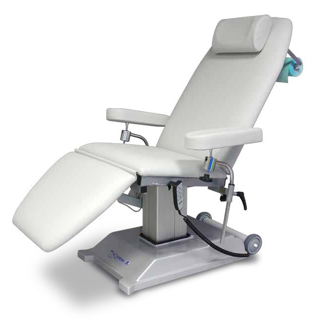 Fotel do dializ wyposażony w jeden siłownik z elektryczną regulacją wysokości.