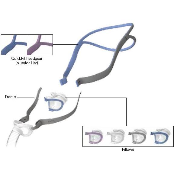 AirFit P10, AirFit for Her firmy ResMed została zaprojektowana dla mężczyzn z pasami w kolorze niebieskim oraz dla kobiet z pasami w kolorze różowym.
