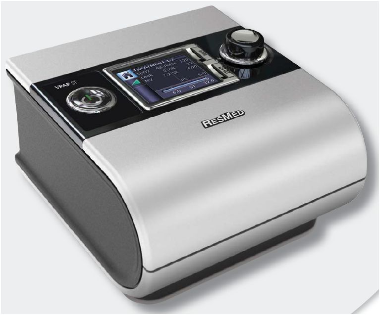 Seria VPAP ST zapewnia skuteczną nieinwazyjną wentylacjię płuc będącą odpowiednim rozwiązaniem do przeprowadzenia każdej terapii dwupoziomowej do wspomagania oddechu typu BILEVEL z możliwością pracy trybach CPAP, BILEVEL S, BILEVEL T, BILEVEL ST. Aparat przystosowany do terapii pacjentów z zaburzeniami typu OBS, przewlekłe zapalenie oskrzeli z rozedmą (POCHP), zaburzenia mechaniki oddechowej np. w skutek skoliozy, zaburzenia nerwowo- mięśniowe, zaburzenia oddechowe pochodzenia centralnego itp. Unikalna seria aparatów BiLevel firmy ResMed, wykorzystuje technologie: Vsync, do automatycznej kompensacji przecieku powietrza i minimalizacji wysiłku oddechowego pacjenta oraz TiControl, do dopasowania czasu wdechu i efektywnej synchronizacji aparatu z pacjentem. Aparat VPAP ST reaguje na oddech pacjenta (moment rozpoczęcia wdechu/wydechu). Oznacza to, że pacjent wyzwala aparat wdechem/wydechem, synchronizuje się, a nastepnie aparatspontanicznie podąża za oddechem pacjenta poprzez podawanie odpowiednich poziomów ciśnień. W momencie, gdy zabraknie oddechu pacjenta lub częstość oddechowa spada poniżej ustalonego poziomu, aparat zacznie wspomagać oddech pacjenta zgodnie z ustawieniami zaleconymi przez lekarza specjalistę (możliwa do ustawienia częstość oddechowa od 5 do 50 oddechów/min.). •cztery tryby pracy: ?CPAP - dostarcza ciągłe dodatnie ciśnienie powietrza (od 4 do 20 mbar)?S spontaniczny - reaguje na spontaniczny oddech pacjenta (ciśnienie wdech/wydech od 2 do 25 mbar - IPAP: 4-25 mbar, EPAP:2- 25 mbar) ?ST spontaniczno-czasowy - reaguje na spontaniczny oddech pacjenta, a w przypadku braku oddechu spontanicznego aparat przełącza się na tryb czasowy (ciśnienie wdech/wydech od 2 do 25 mbar - IPAP: 4-25 mbar, EPAP:2- 25 mbar)?T czasowy - dostarcza ciśnień wdechowych IPAP i wydechowych EPAP dla określonej częstości oddechowej (ciśnienie wdech/wydech od 2 do 25 mbar - IPAP: 4-25 mbar, EPAP:2- 25 mbar) •częstość oddechowa od 5 do 50 oddechów/min., •regulowany czas narastania przy przełączaniu między ciśnieniem EPAP a IPAP; od 100 do 900 ms.