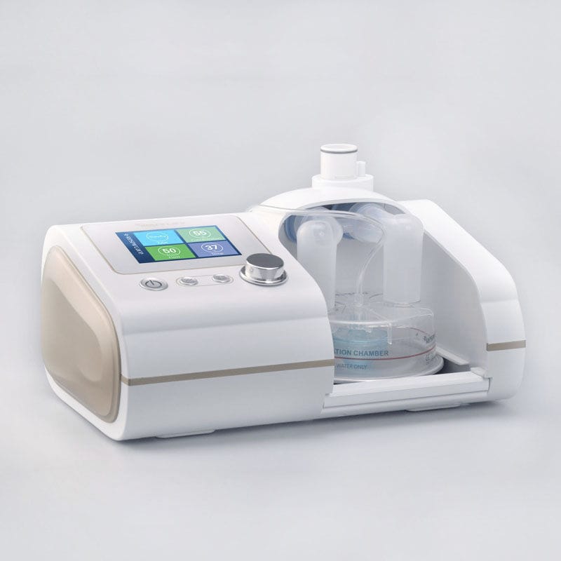 Generator wysokich przepływów ze zintegrowanym nawilżaczem ma za zadanie dostarczyć w drogi oddechowe pacjenta ogrzane i nawilżone powietrze wzbogacone w tlen.
