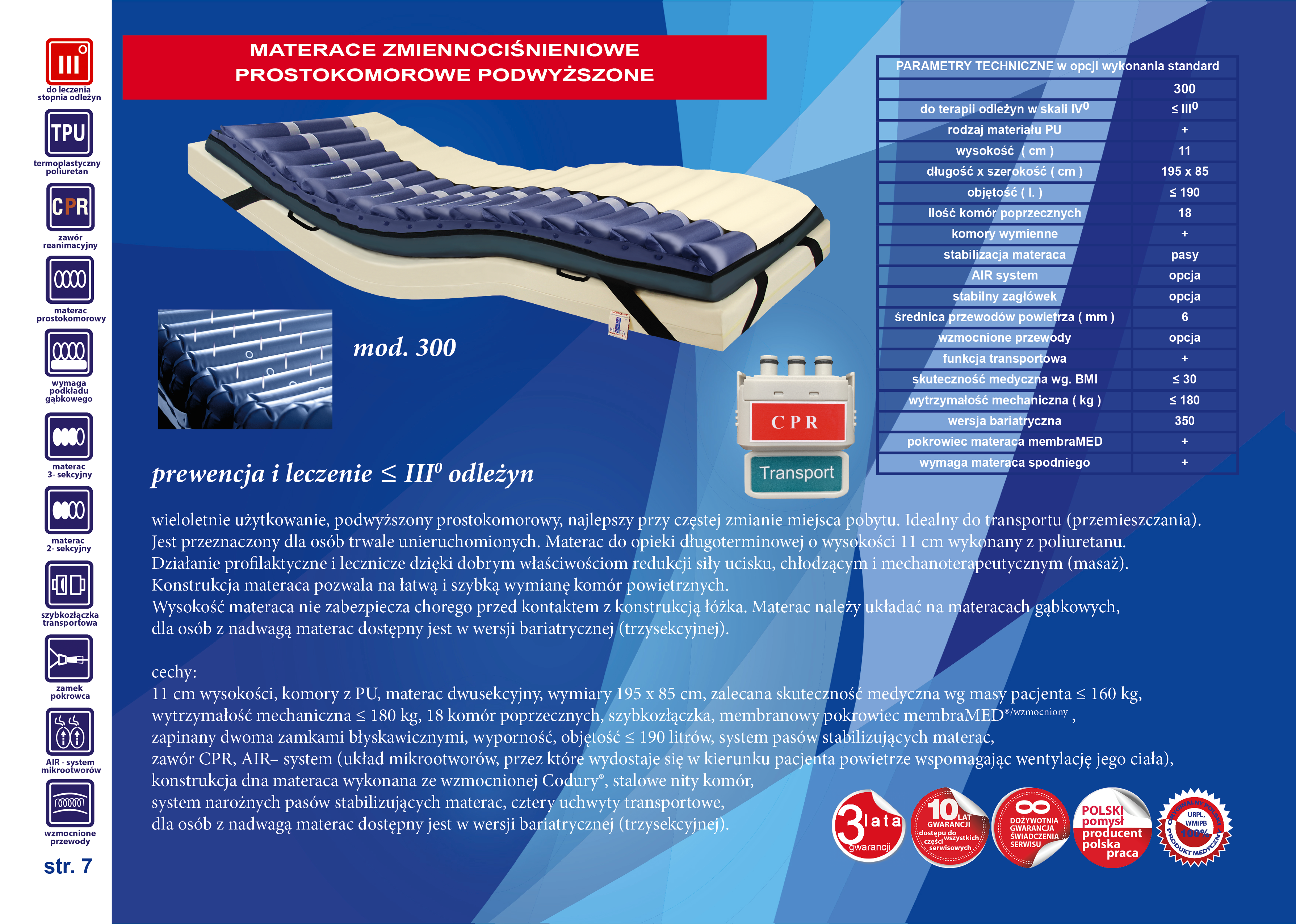 - konstrukcja materaca pozwala na łatwą i szybką wymianę komór powietrznych;