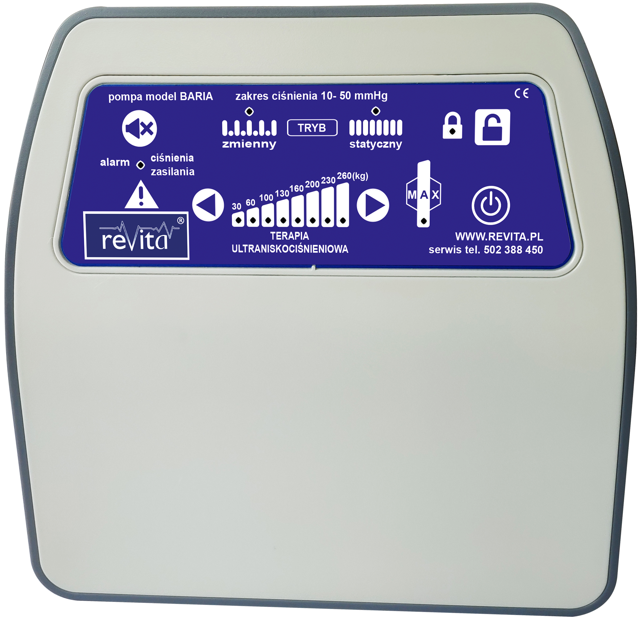 Ultraniskociśnieniowa pompa model BARIA: prewencja i leczenie wszystkich odleżyn pompa dedykowana do zasilania materacy bariatrycznych; dla pacjentów otyłych klinicznie.