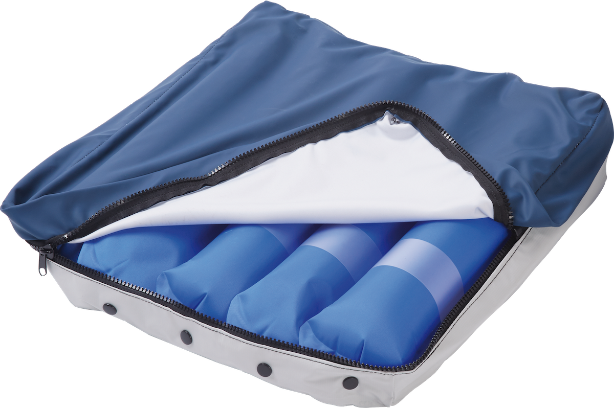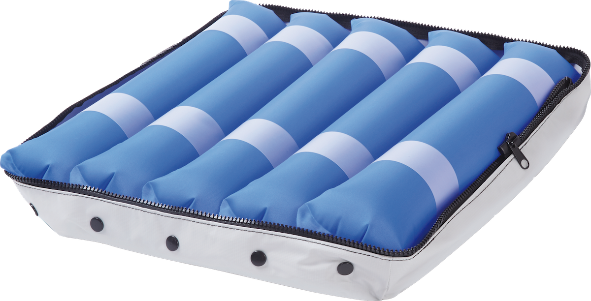 poduszka zmiennociśnieniowa do opieki długoterminowej, budowa prostokomorowa, posiada wymienne elementy. Działanie profilaktyczne dzięki dobrym właściwościom redukcji siły ucisku, chłodzącym i mechanoterapeutycznym (masaż). Konstrukcja poduszki pozwala na łatwą i szybką wymianę pojedynczych komór w przypadku ich uszkodzenia. Poduszka o wysokości 10 cm, wykonana z pianki PU, komory z PCVN. Poduszkę zmiennociśnieniową tworzy zespół połączonych ze sobą elastycznych komór powietrznych. Komory te zagłębione są w piance poliuretanowej. Poduszka umieszczona jest w pokrowcu membraMED® zamykanym na suwak. Pokrowiec posiada zabezpieczenie przeciwpoślizgowe, które skutecznie stabilizuje poduszkę na wózku inwalidzkim. Poduszka została zaprojektowana i wykonana w taki sposób, aby skutecznie zapobiegać powstawaniu odleżyn i zapewnić maximum komfortu osobom zmuszonym do pozostawania przez długi czas w pozycji siedzącej. Działanie poduszek siedzeniowych jest porównywalne z materacami zmiennociśnieniowymi. Komory poduszki automatycznie współpracują ze sobą przy nabieraniu i wypuszczaniu powietrza. Poduszka wykonana jest z elastycznego tworzywa i umieszczona w pokrowcu zamykanym na suwak.