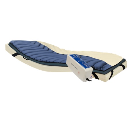 materac Alfabet zasilany pompą Alfa, przeznaczony do prewencji i leczenia odleżyn, najlepszy dla pacjentów przebywających w łóżku w pozycjach z uniesioną głową. Dla osób z nadwagą dostępny w wersji trzysekcyjnej.