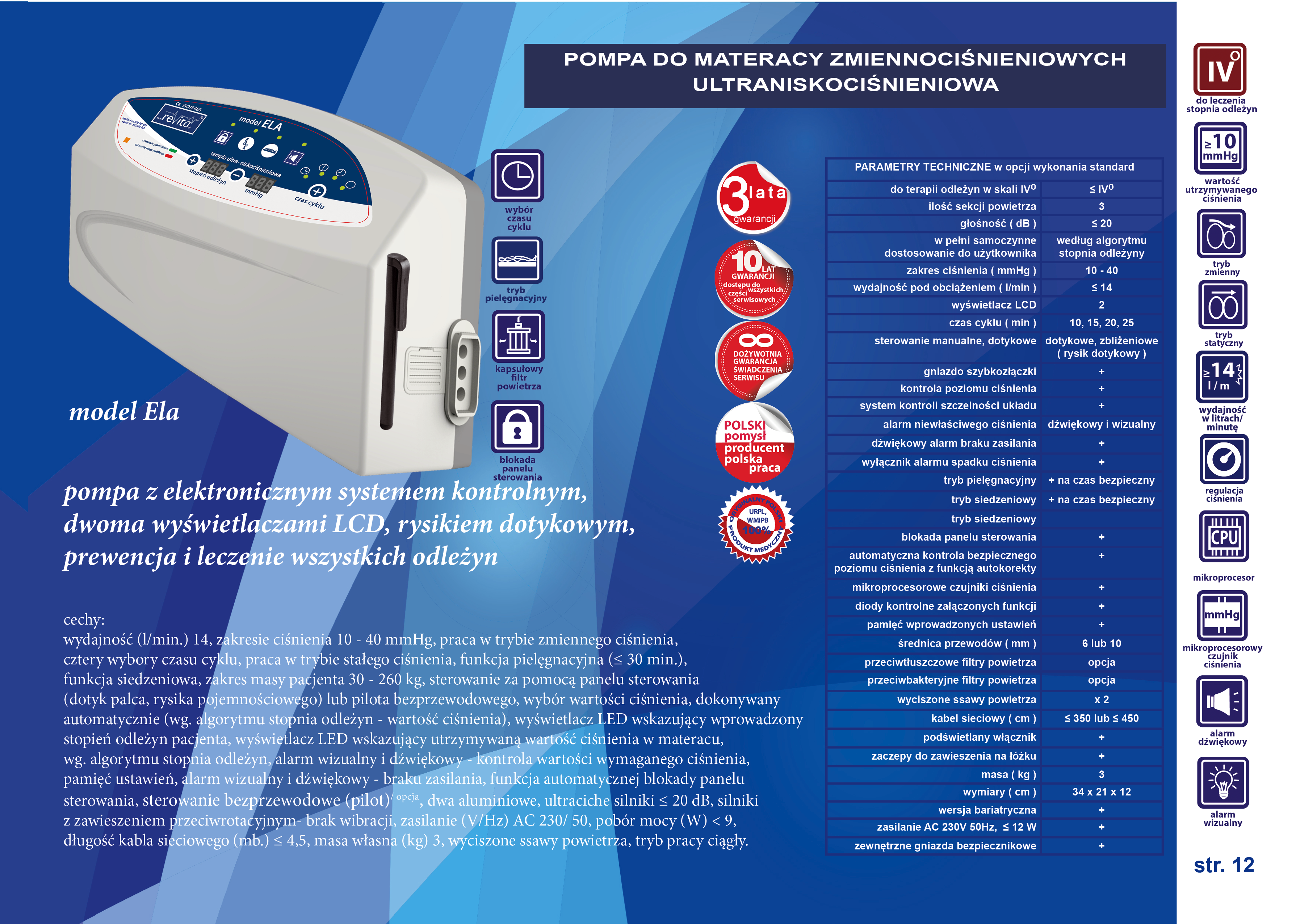 • pompa z elektronicznym systemem kontrolnym, dwoma wyświetlaczami LCD, rysikiem dotykowym, prewencja i leczenie wszystkich odleżyn.