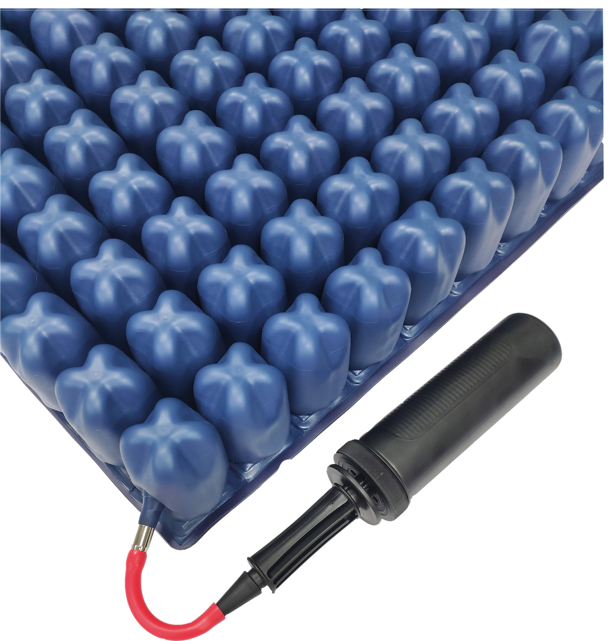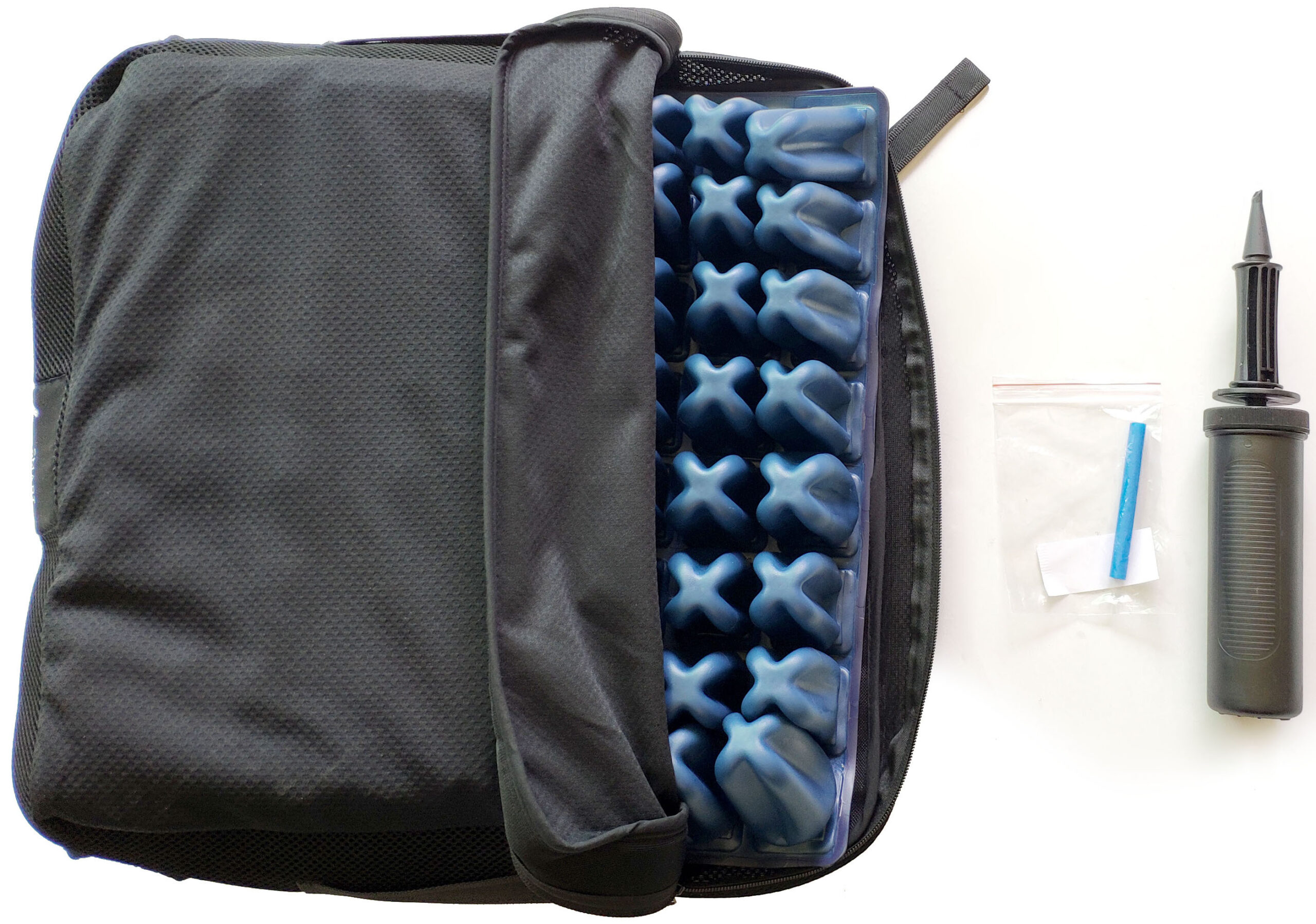 Siedzeniową poduszkę stałociśnieniową tworzy zespół połączonych ze sobą komór zbudowanych z tzw. wypustków- baniek wypełnionych powietrzem. Poduszka wykonana jest z elastycznego tworzywa i umieszczona w pokrowcu zamykanym na suwak. Za pomocą pompki ręcznej napełniamy poduszkę powietrzem poprzez zawór regulacyjny, który pozwala regulować ciśnienie dla komfortu Użytkownika. Powierzchnia poduszki samoczynnie dostosowuje swój kształt do ciała pacjenta co stwarza równomierny rozkład sił uciskanych tkanek zapobiegając powstawaniu odleżyn. Wolne przestrzenie między komorami i przepuszczalny materiał pokrowca pozwalają na optymalną wentylację siedziska, odprowadzenie ciepła oraz redukcję pocenia się. Pokrowiec jest dostosowany do mycia i prania. Dolna część pokrowca wykonana jest z materiału przeciwpoślizgowego dla wymaganej stabilizacji poduszki.