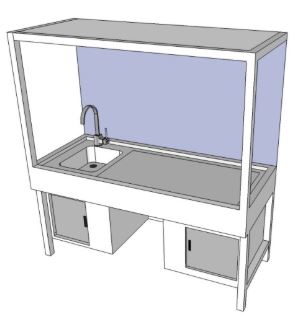 Przyłącza niezbędne do pracy dygestorium: przewód zasilający 3x2,5 mm2, spust kanalizacyjny o średnicy 50 mm, przyłącza zimnej i ciepłej wody zakończone zaworem 1/2”, kanał wentylacyjny o przepustowości min 900 m3/h.