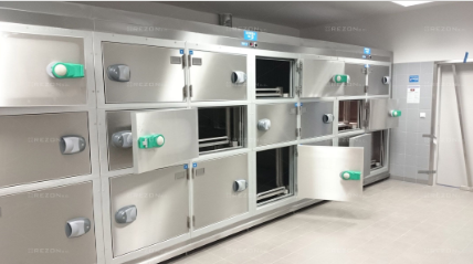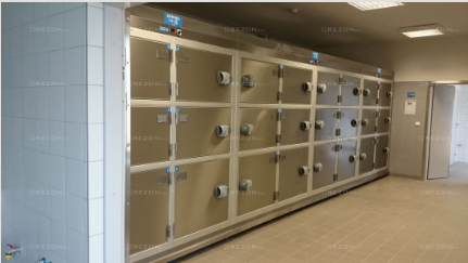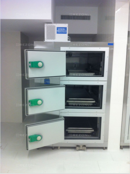 - Komora wyposażona jest w regały gwarantujące łatwy załadunek i wyładunek ciał
